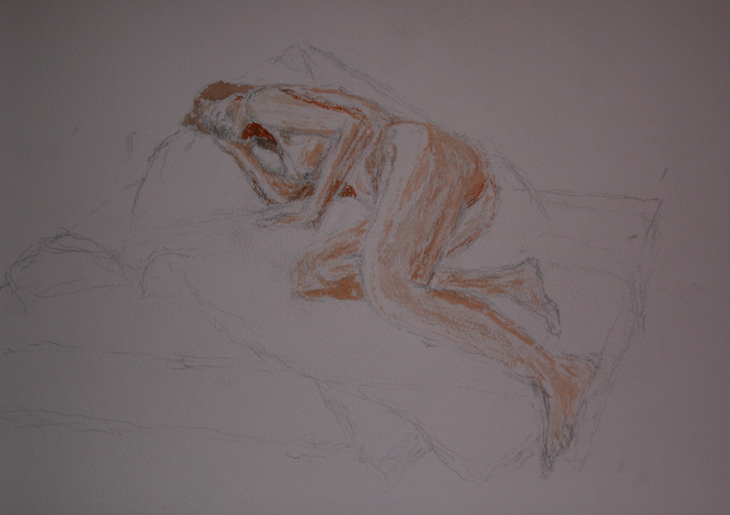 300 mm x 200 mm watercolour on paper Description: A nude on some cushions